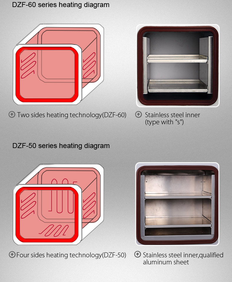 Converting the vacuum pressure of the vacuum drying oven to the vacuum reading of the electric constant temperature vacuum drying oven is often questioned by customers. Now take the vacuum drying oven produced by Kenton as an example to illustrate, the configuration of the vacuum ;ressure gauge is a single-turn spring tube type, the measurement is the relative pressure, the pointer is counterclockwise, the starting point 0 represents an atmospheric pressure of 0.1MPa, if the indicator is Px (should be a negative value), the pressure P=Px + 0.1MPa. For example, the indicator is Px=-0.02MPa=-20kPa, and the relative pressure is P=Px+0.1MPa=80 kPa. The indicator is Px=-0.04MPa=-40kPa, and the pressure P=Px+0.1MPa=60 kPa. The indication is Px=-0.1MPa=-100kPa, and the pressure P=Px+0.1MPa=0 kPa, that is, the relatively large negative pressure value displayed by the pressure gauge.