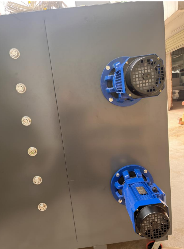 Twelve stainless steel heating tubes. The first 250 mm at the front of each tube is non-heating. Each tube is rated at 2500 W. Equipped with high-power dual motors and air impellers, with drawings and parameters confirmed by the customer.